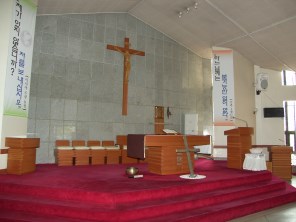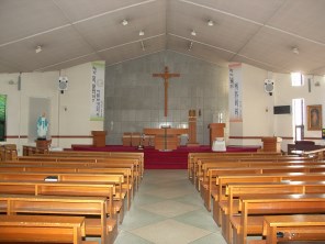 - 옥포 성당 내부와 성수대