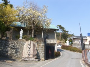 - 언양 성당 입구 표지석과 예수성심상