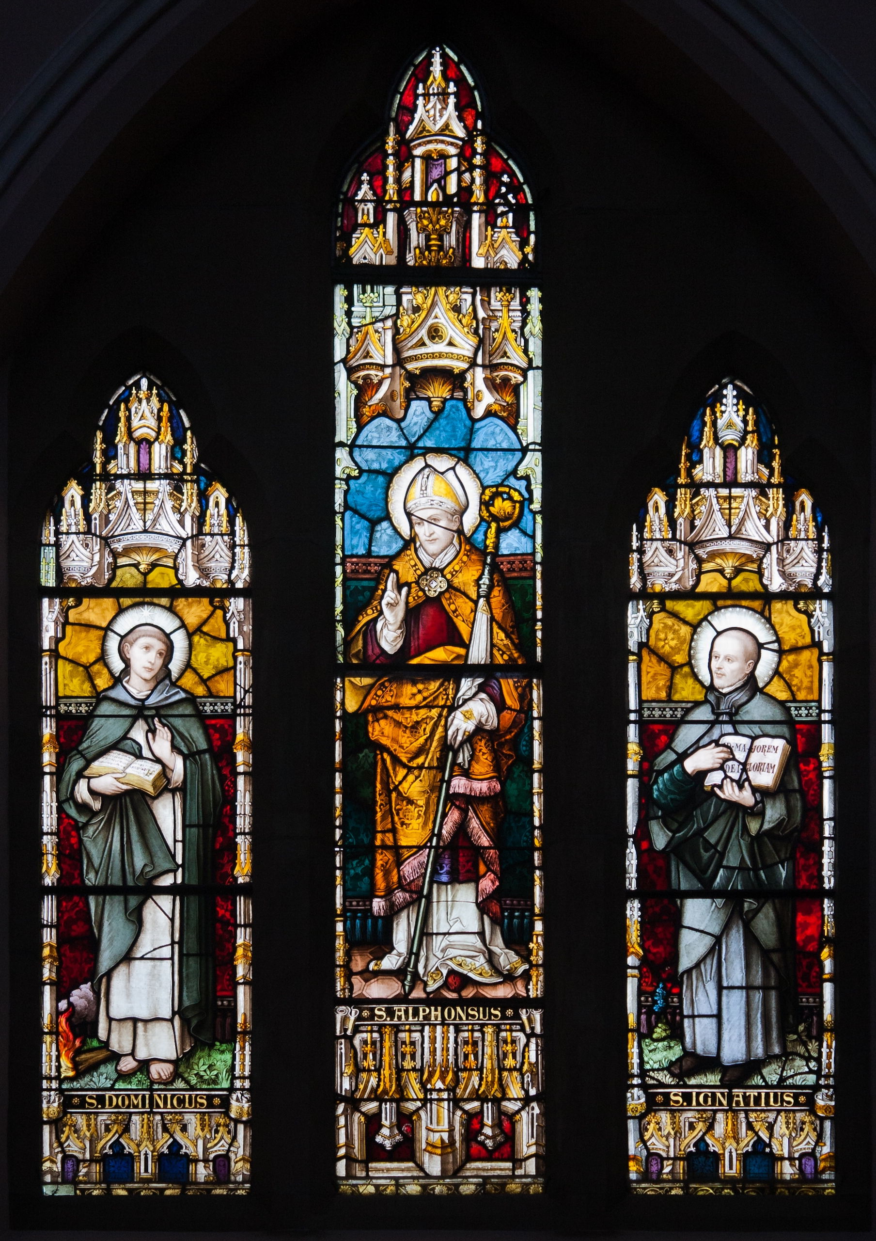 프란츠 보르지아 마이어(Franz Borgias Mayer)의 성 도미니코(Dominicus, 좌~)와 성 알폰소 마리아 데 리구오리(Alphonsus Maria a Ligorio)와 로욜라의 성 이냐시오(Ignatius)